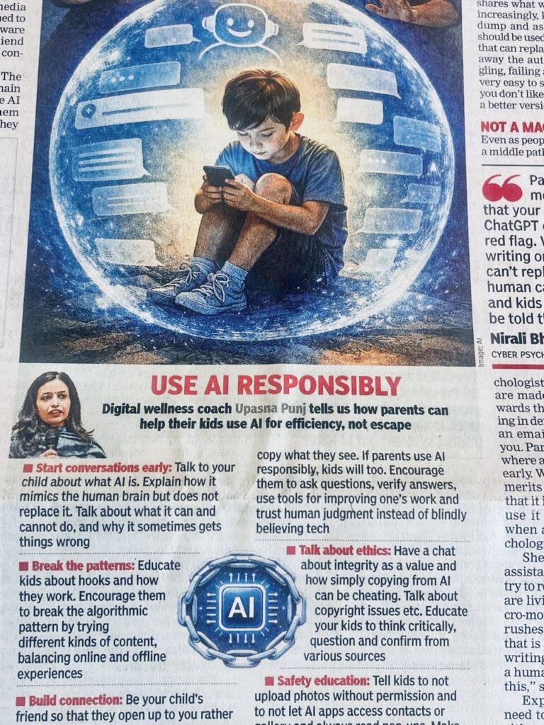 Hi, I am Upasna Punj, Digital Wellness Coach for tweens and teens on a mission to empower children and their families with the tools and knowledge to help them navigate the digital world safely and mindfully, fostering self-belief, resilience, and respect.